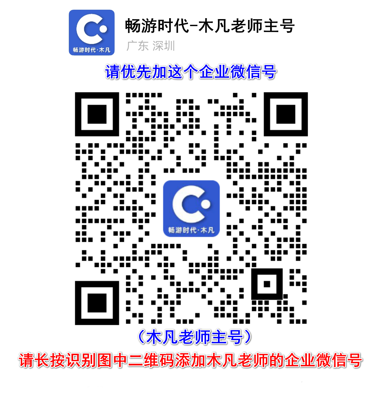 最后,请用微信扫描下方二维码,加上畅游时代木凡老师企业微信号详聊